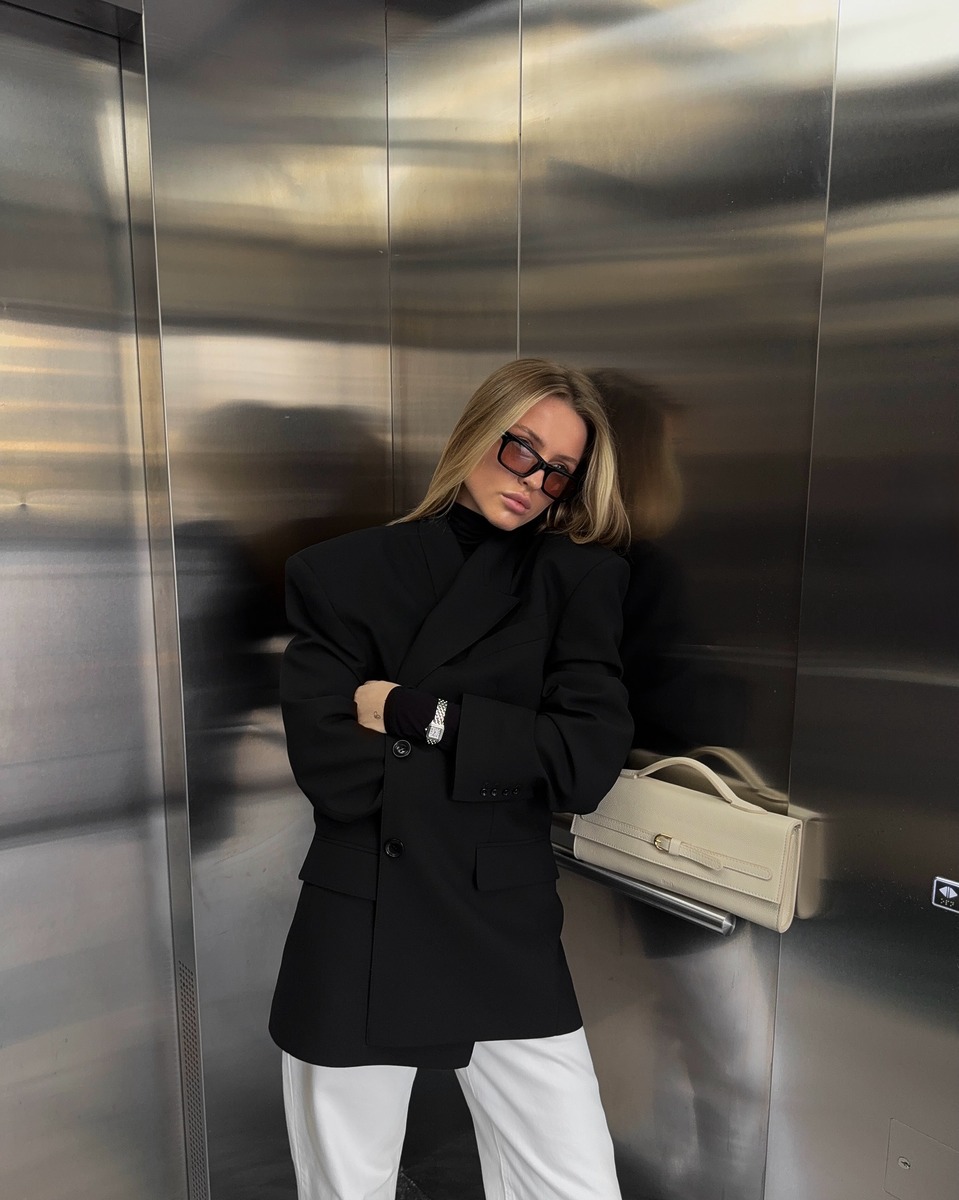 오버사이즈 블랙 블레이저는 데일리룩의 가장 기본템이죠. 넓게 각 잡힌 어깨, 툭 떨어지는 시크한 스타일, 군더더기 없는 심플한 디테일과 모던한 블랙 컬러가 조건이에요. 화이트 진이나 데님 팬츠, 새틴 스커트부터 슬랙스까지 어떤 룩에나 잘 어울린다는 사실. 하나쯤 있으면 출근 룩부터 데이트룩까지 두루 활용할 수 있죠.