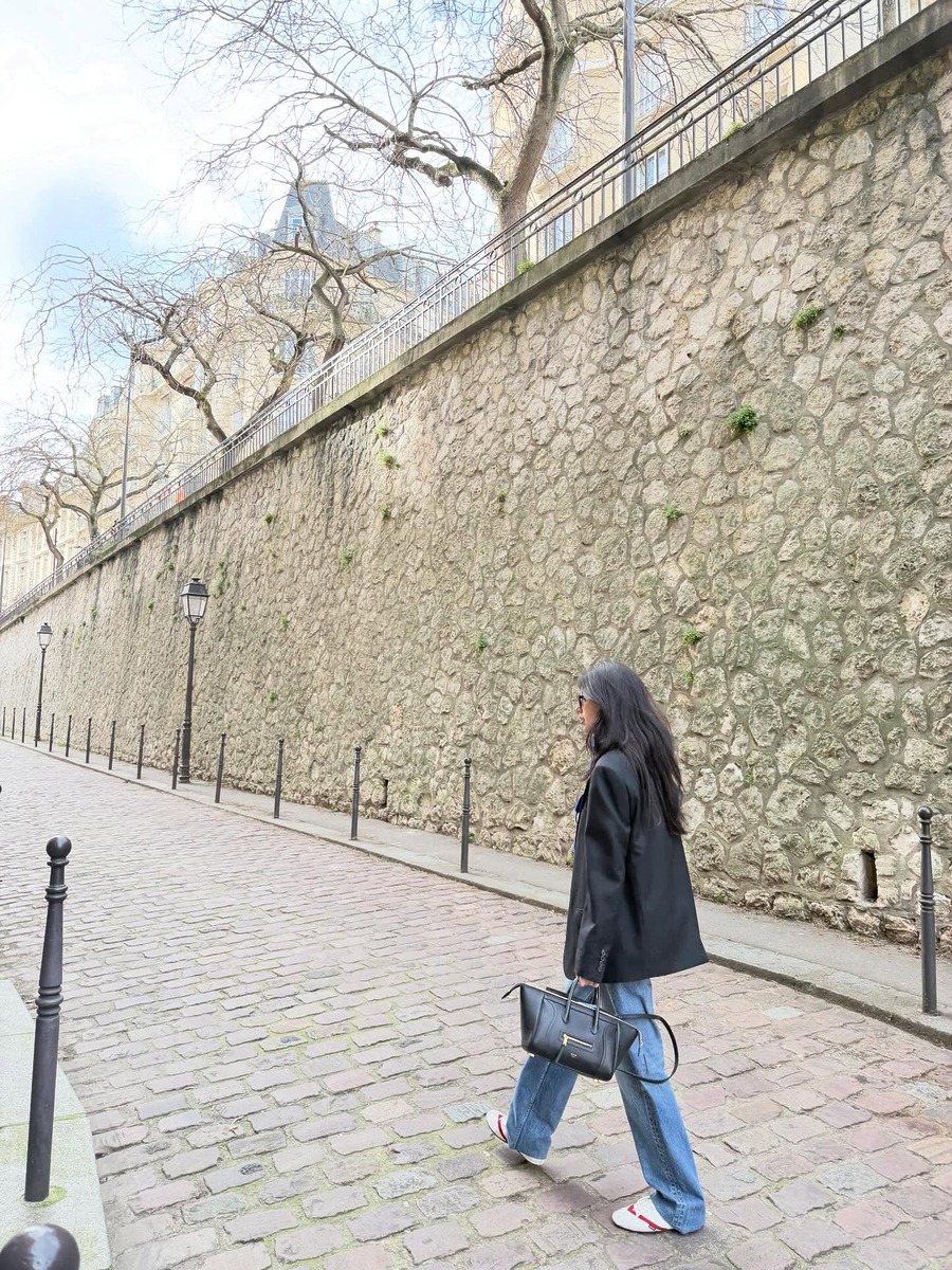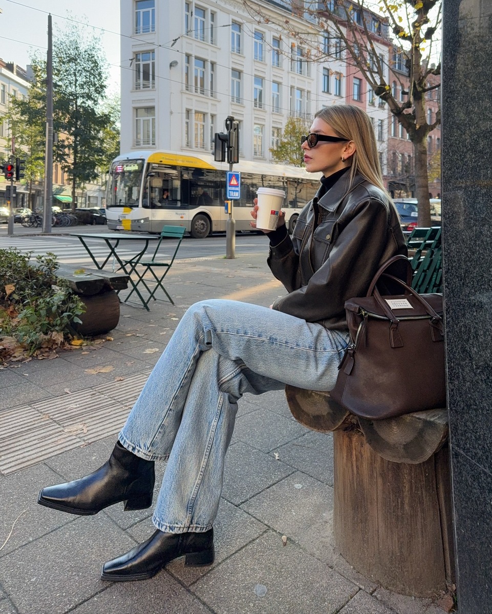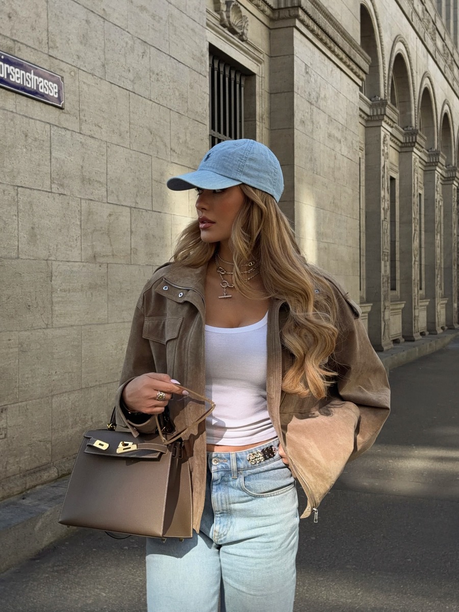 브라운 컬러 아우터와 함께 입으면 부드럽고 고급스러운 느낌을 연출할 수 있습니다. 안드레아는 재킷과 플랫 슈즈의 컬러를, 폴리나는 재킷과 가방, 그리고 모자와 팬츠의 색상을 통일해 스타일링의 완성도를 높였죠. 갈색 재킷이나 점퍼를 텁텁하지 않게 활용하고 싶다면 연청 데님이 좋은 선택지가 되어줄 거예요.