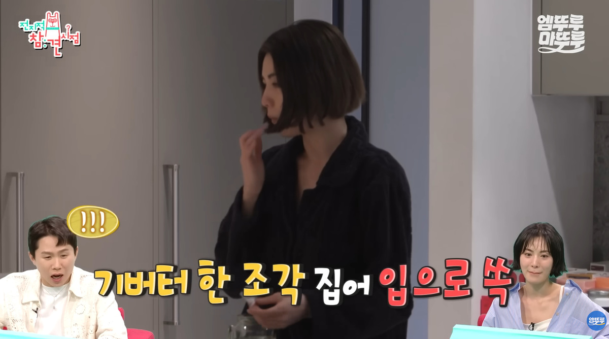 그녀의 아침은 꽤나 바쁩니다. 먼저 공복에 기버터 한 조각을 섭취해 포만감과 에너지를 주고 혈당이 치솟는 것을 예방해 줘요. 이후 목 건강을 위해 배즙을 먹고 애플 사이다 비니거와 레몬즙을 물에 타서 마셔 줍니다. 여기서 끝이 아니에요. 항산화 효과가 뛰어난 토마토 즙과 콜라겐까지 챙겨주며 다소 배부르게(?) 하루를 시작합니다.