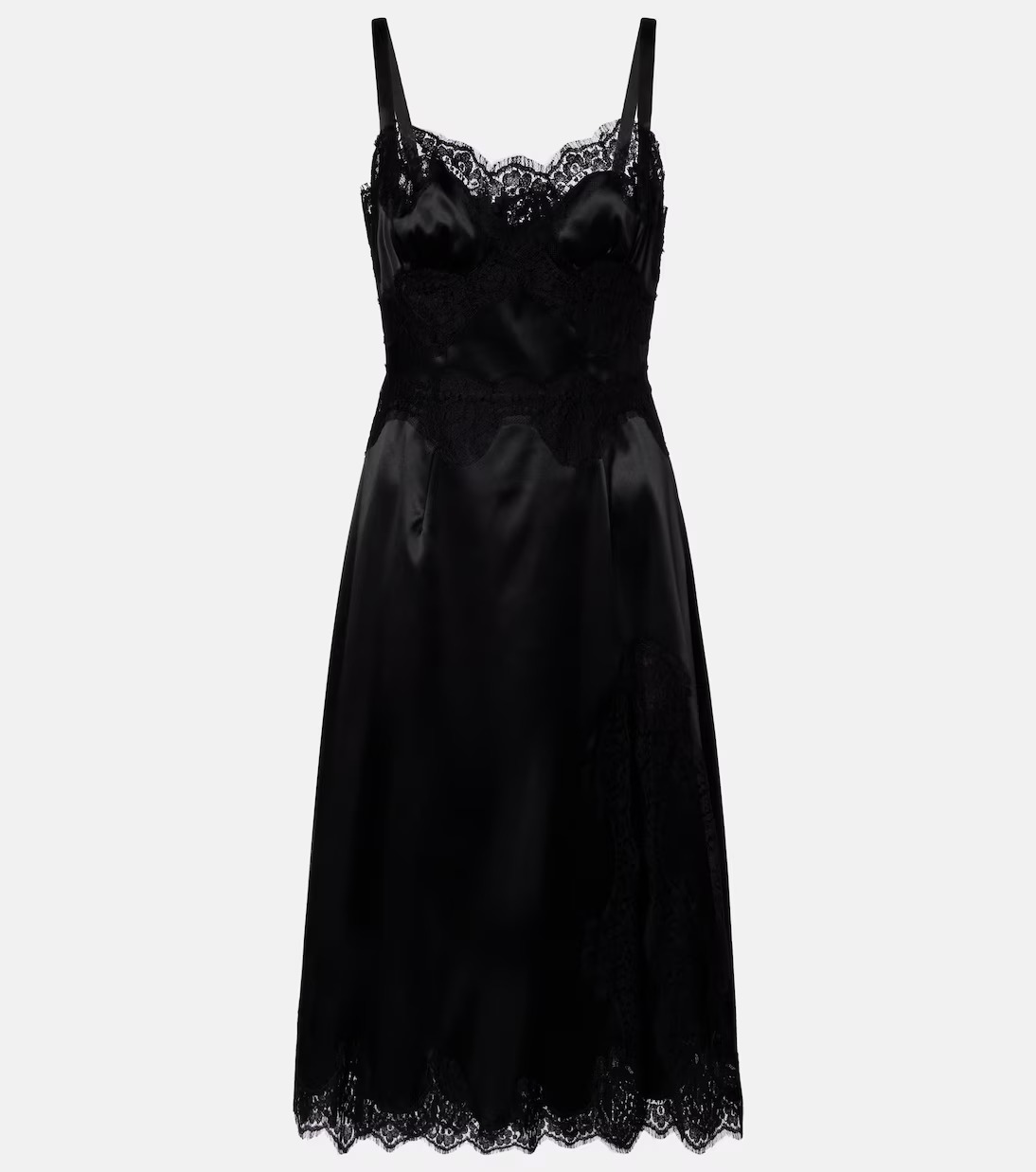 • Dolce&Gabbana레이스 트리밍 새틴 슬립 드레스
