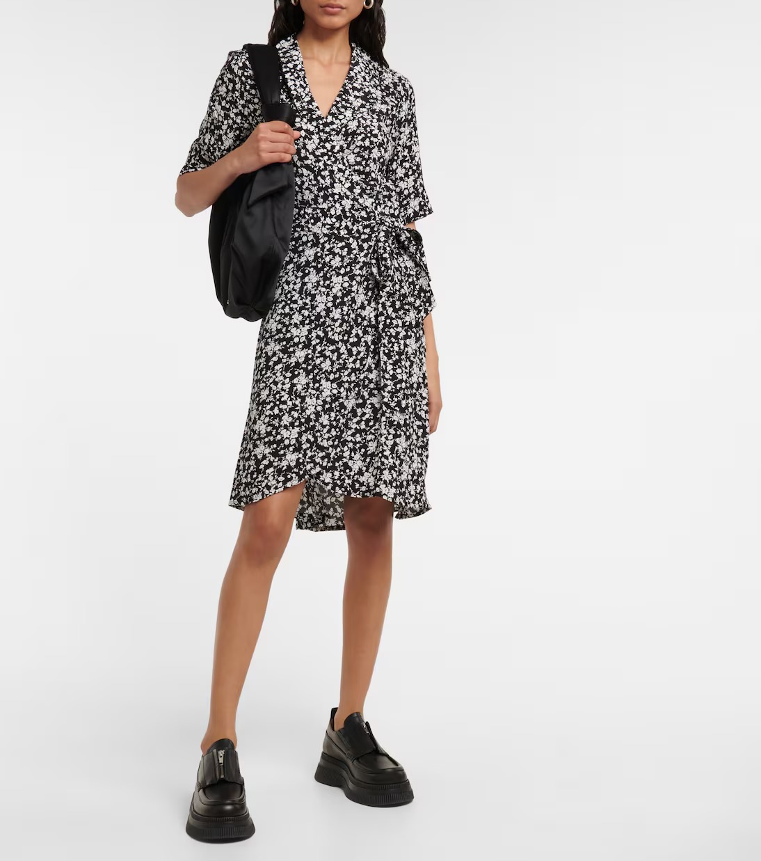 • Ganni플로럴 프린트 크레이프 랩 미니드레스