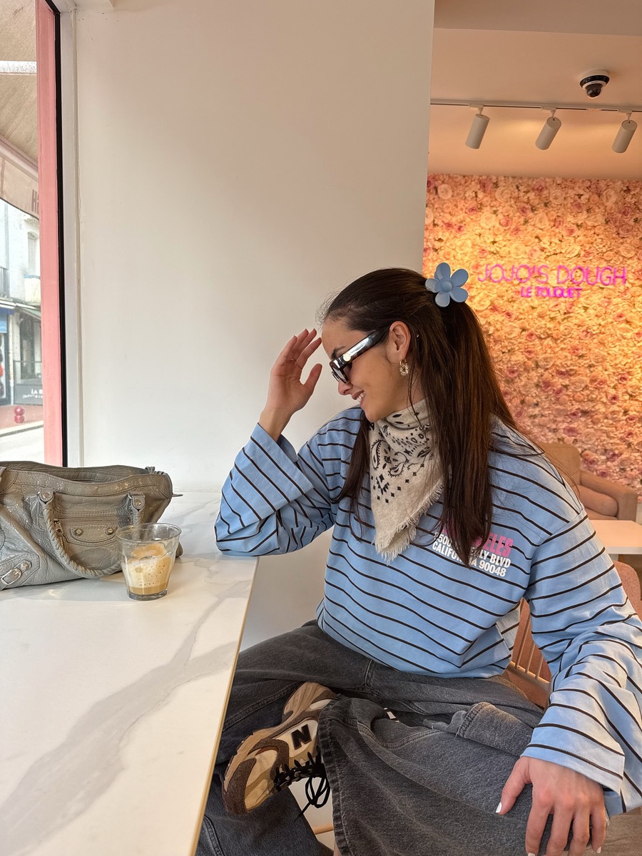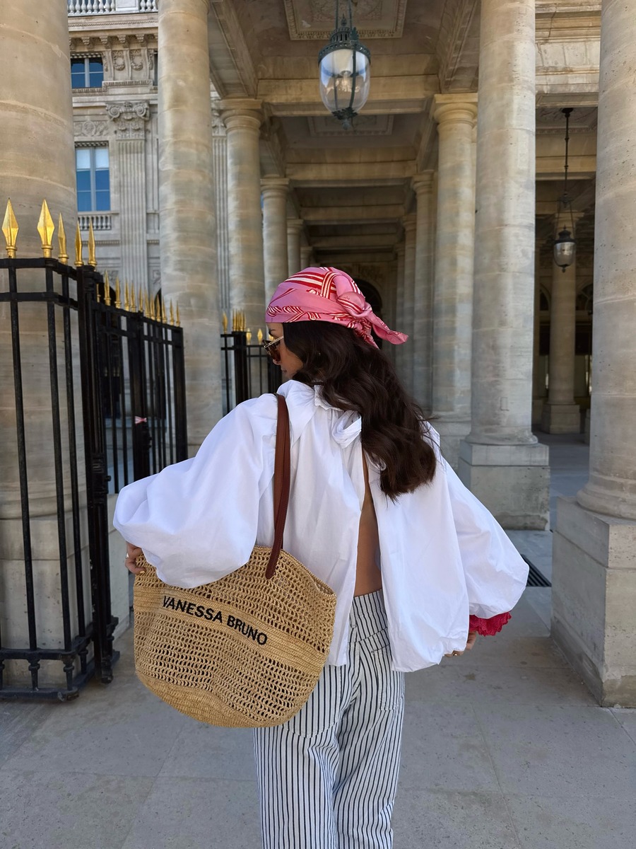 평소 스카프를 자주 활용한다면 머리에 두건처럼 쓰는 방법도 시도해 보세요. 정사각형 스카프를 반으로 접거나 삼각형 모양의 스카프를 선택해 머리 뒤에서 가볍게 묶어주는 거죠. 패턴이나 컬러가 화려한 것을 선택해 전체적인 룩에 포인트를 주어도 좋고, 컬러가 강한 옷을 입었다면 스카프는 무채색으로 선택하는 것도 방법이죠. 스카프를 머리에 묶어 연출하는 방식은 피크닉 시즌에 제격!