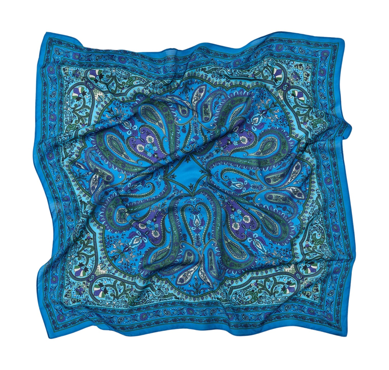 스카프를 활용하는 기본적인 방법으로는 목에 가볍게 두르는 것. 얇게 접어서 묶지 말고 패턴을 좀 더 과감하게 드러내 보세요. 삼각형으로 접어 목 아래쪽으로 보이게 뒤에서 묶어주면 쉽죠. 캐주얼한 티셔츠에 이렇게 스카프만 더해줘도 스타일에 포인트가 되어 준답니다. 무난한 페이즐리 패턴을 추천해요.