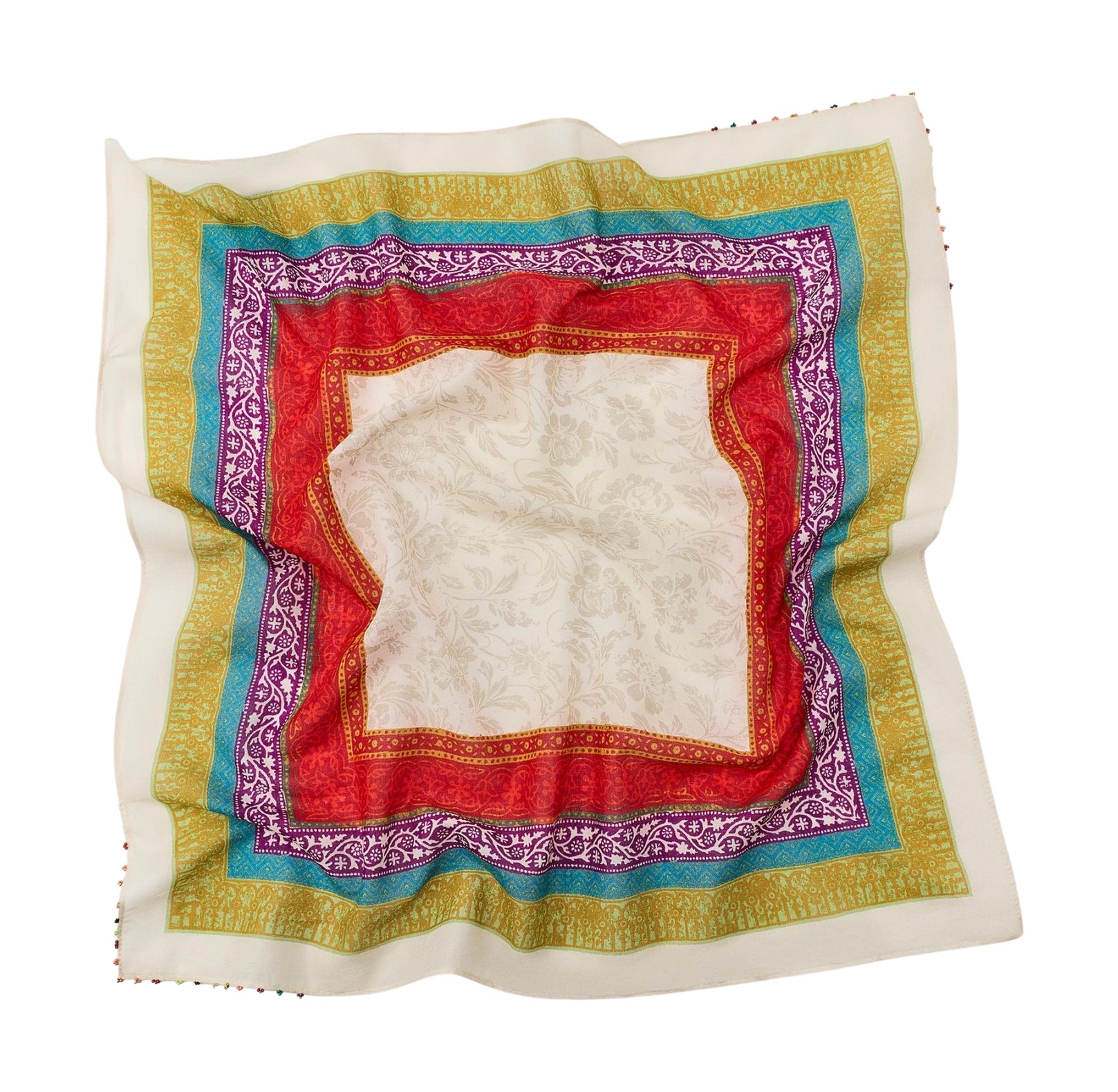 패턴이 화려한 빅 사이즈 스카프는 여러 번 접어 허리 벨트처럼 연출할 수 있어요. 에스닉한 무드의 드레스에 살짝 둘러주면 보헤미안 스타일이 완성되죠. 여기에 볼드한 골드 네크리스와 샌들로 스타일링을 마무리해 보세요!