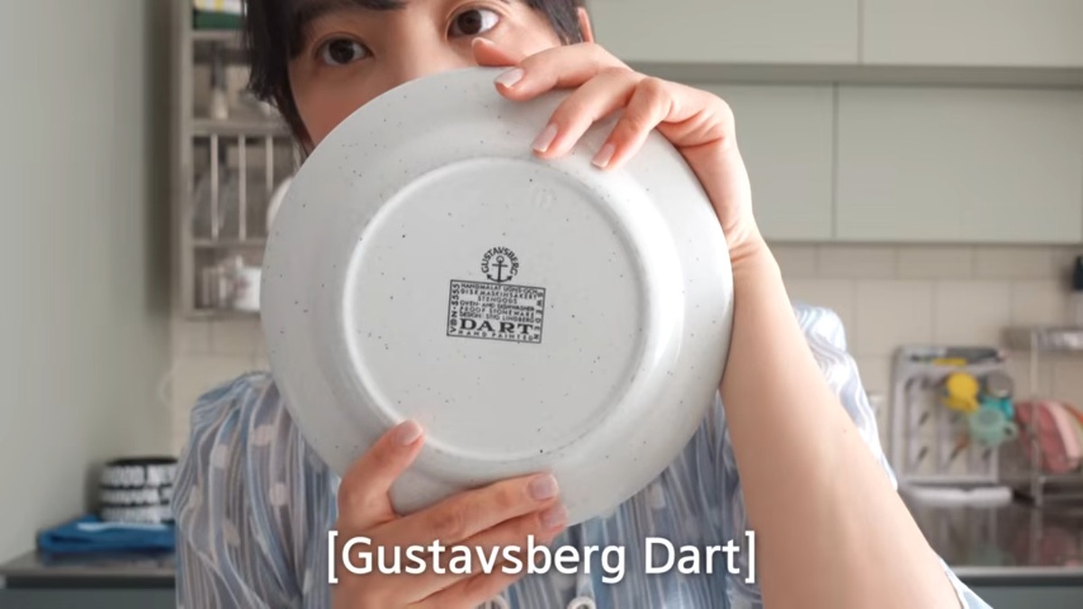 뷔페식으로 한 접시에 올려먹는 윤승아 가족의 저녁 식탁에 자주 등장하는 접시. 테두리의 파란색 줄무늬가 시그니처인 구스타브스베리(Gustavsberg)의 다트(Dart) 시리즈입니다.