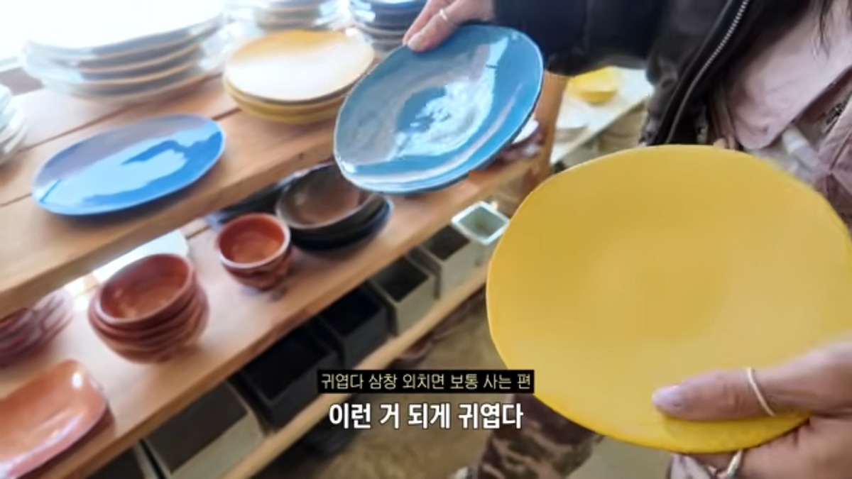 채널 제작진이 도자기 마을에서 가장 인기가 많다고 귀띔한 곳. 예상대로(?) 윤혜진은 여러 모양의 수저 받침들부터 속이 깊은 밥그릇 국그릇 세트까지 마구 주워 담았습니다. 실생활에 쓰기 좋은 아이템이 많기 때문이라고요. 앞접시 용도로 고른 컬러 플레이트가 시선을 잡네요.
