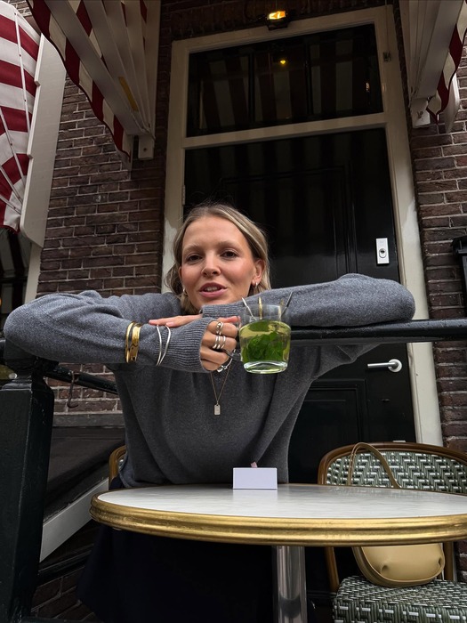 뱅글이 가장 빛을 발할 때는 원피스와 함께할 때. 장식이 적은 원피스에 뱅글을 더하면 별다른 스타일링 없이도 우아한 인상이 완성됩니다. 이때 원피스와 뱅글의 톤을 맞춰 톤온톤으로 매치하면 룩에 통일감이 생기고, 뱅글 자체가 룩의 완성도를 높일 수 있어요.