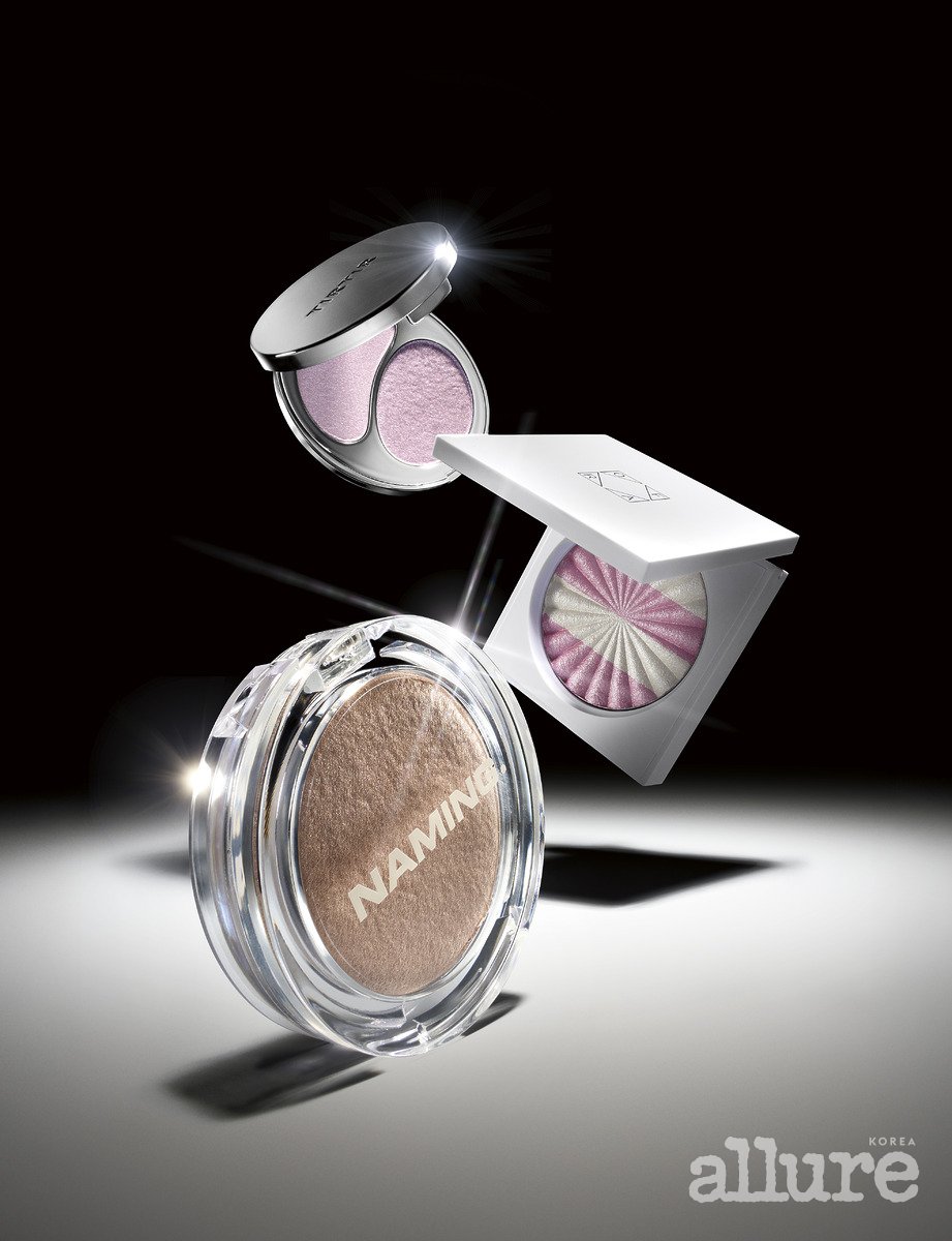 베이크드 하이라이터는 주름, 모공 끼임이나 요철 부각이 적다. 덕분에 눈썹 뼈, 입술산 같은 국소 부위의 입체감을 살리기에 제격. 사용할 때는 모가 많지 않고 얇게 퍼지는 펜 브러시를 선택해 피부 표면을 스치듯 바르자. 고운 입자가 고르게 쌓이면서 반짝임을 극대화해준다. 다만, 메이크업 중간에 사용하면 다른 제형과 섞이며 텁텁해지니 마무리 단계에 쓸 것.