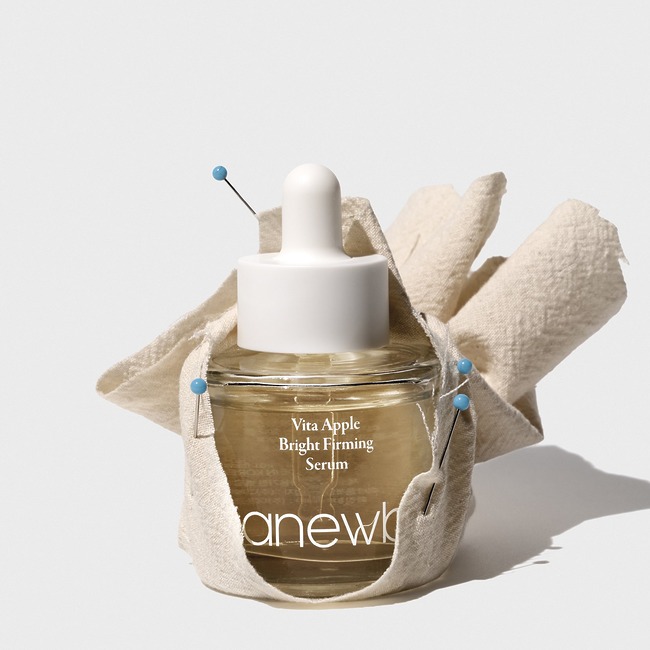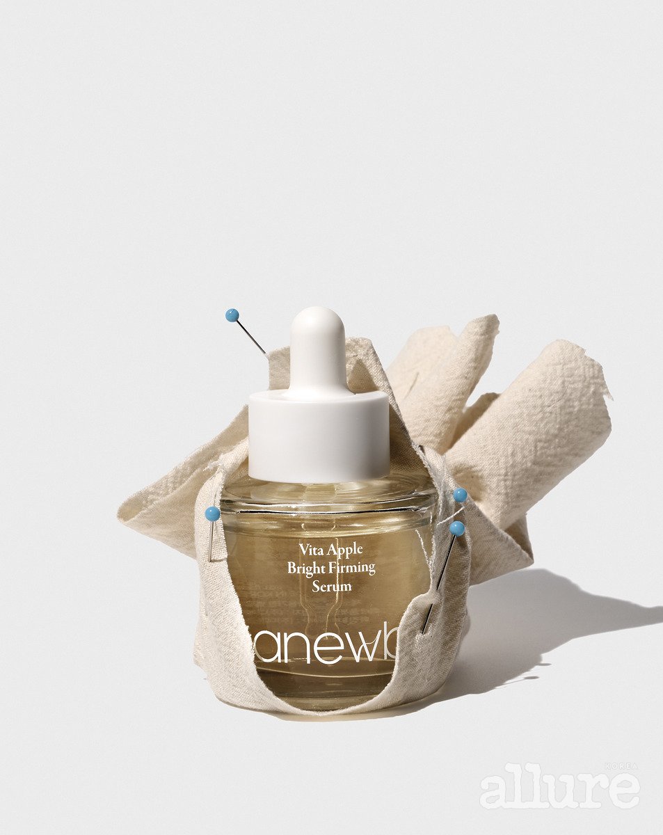 아뉴브의 비타애플 브라이트 퍼밍 세럼 색소침착을 케어해 칙칙해진 피부 톤을 밝히고, 맑고 투명한 피붓결로 가꿔준다. 30ml 3만2천원.