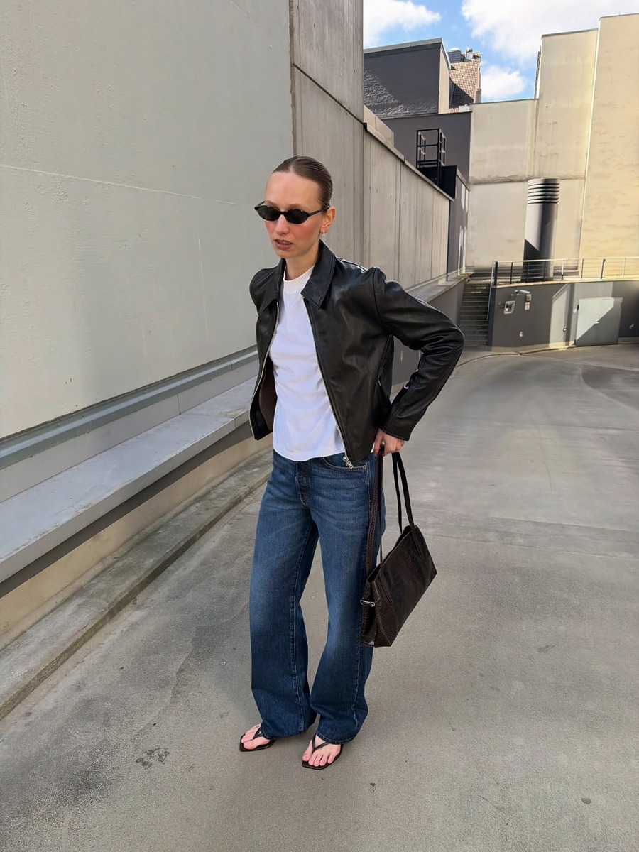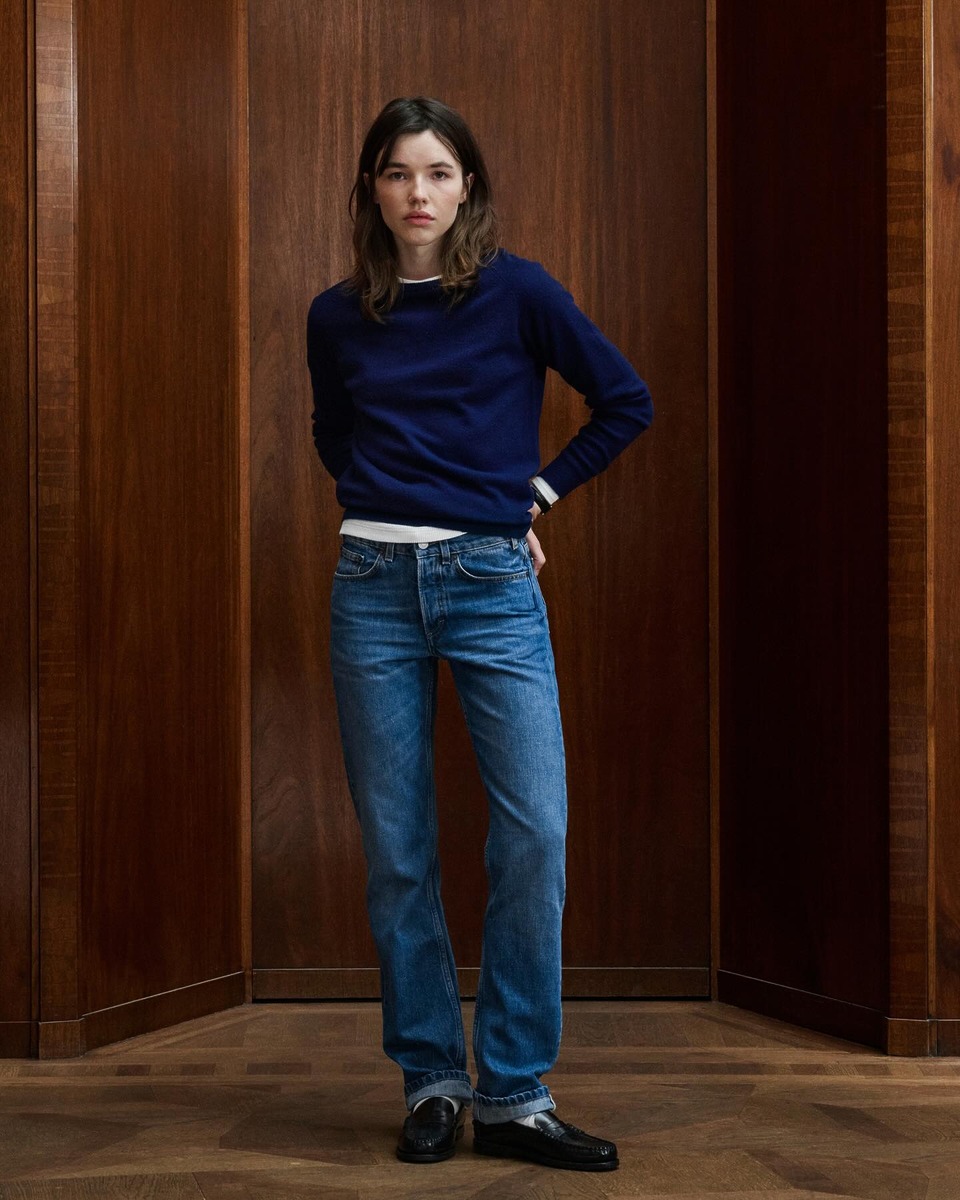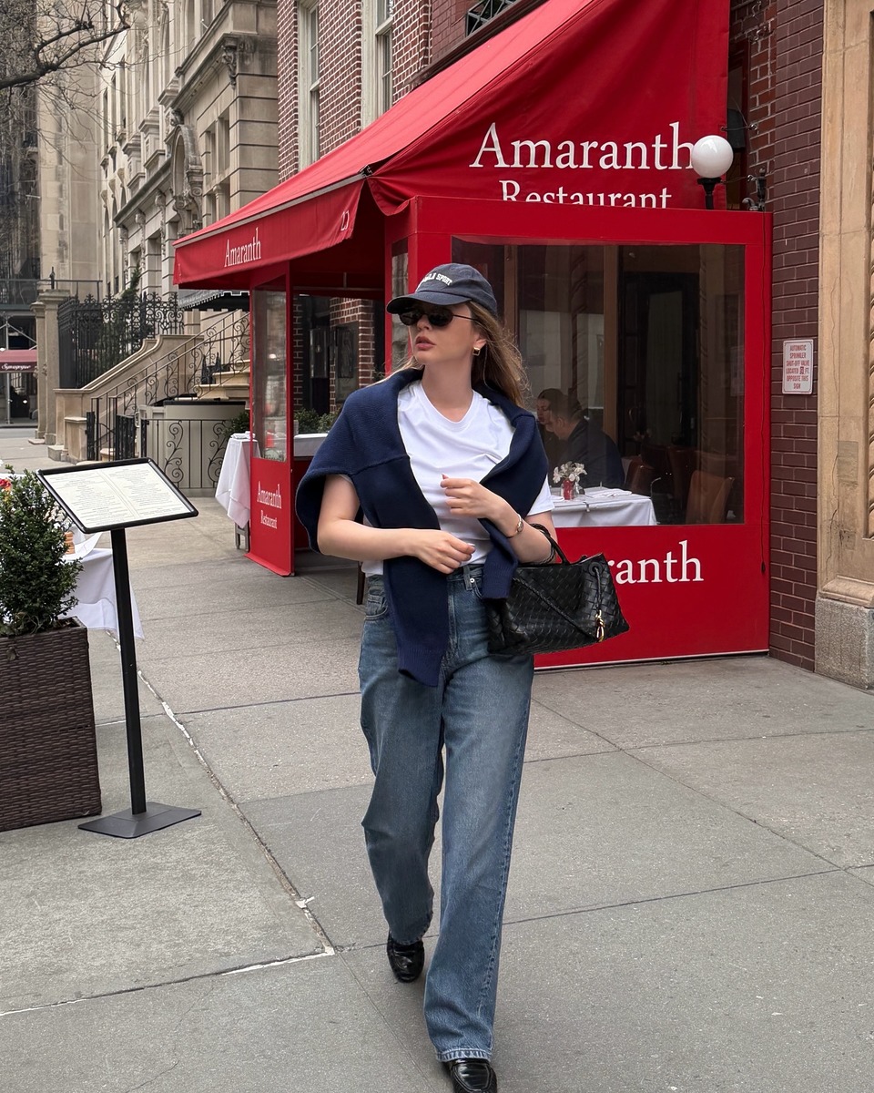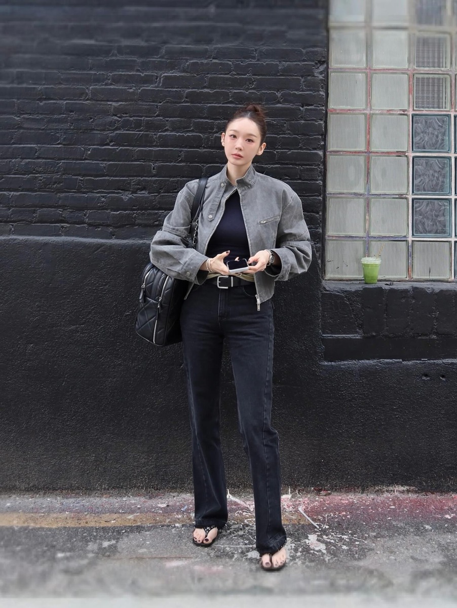 팬츠를 입을 때 신경 써야 할 것 중 하나가 바로 신발이죠. 스트레이트 데님은 폭이 와이드 핏 데님에 비해 좁기 때문에 청키한 어글리 슈즈보다는 날렵한 신발을 선택하는 것이 더 좋습니다. 특히 스트레이트 데님이 혹여나 통통한 하체를 부각시키지 않을까 걱정된다면 앞코가 뾰족한 스틸레토를 신어주면 이런 점을 보완할 수 있어요. 봄이면 손이 자주 가는 로퍼 역시 좋은 선택지입니다. 날이 좀 더 따뜻해지면 통 샌들로 시크한 매력을 더해주세요.
