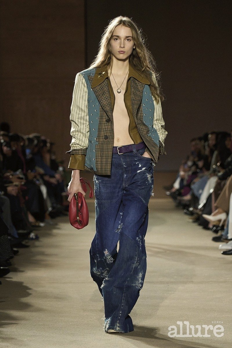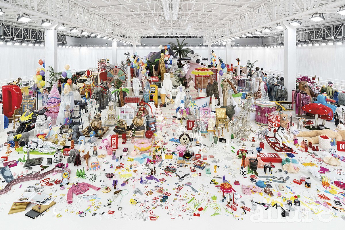 거의 50년에 가까운 시간을 지나며 쌓인 디젤의 문화는 이번 런웨이에서 하나의 장면으로 펼쳐졌다. 브랜드는 1978년 이후의 역사를 기록한 아카이브 기념품 약 5만 점을 공개하며 쇼 공간 자체를 거대한 설치 작품으로 탈바꿈시켰다. 6000여 개의 카테고리에서 수집한 오브제와 소품이 강렬한 조명 아래 층층이 배치되며, 디젤이 오랫동안 축적해온 파티와 서브컬처의 에너지를 시각적으로 드러냈다. 재사용과 변형을 거친 풍경은 창의적인 업사이클링에 대한 브랜드의 태도를 상징적으로 보여주며, 그 메시지는 리사이클 소재를 적극 활용한 이번 시즌의 데님과 레디투웨어, 백 컬렉션 전반으로 자연스럽게 이어진다.
