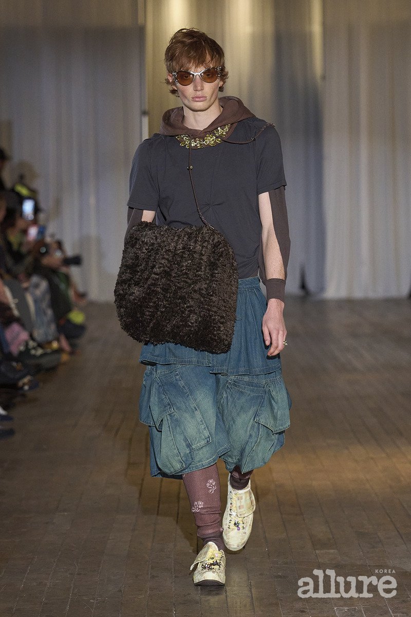 소재에 대한 디자이너들의 실험은 이번 시즌에도 계속된다. 콜리나 스트라다는 오가닉 코튼과 데드스톡 플리스, 텐셀과 헴프를 섞은 바이오 소재 등 자연 유래 텍스타일을 활용해 컬렉션 전반에 소재의 순환 가능성을 드러냈다. 한편, 디자이너 캐롤라인 짐발리스트는 금속 장식 대신 자연에서 영감을 얻은 바이오 소재를 의복의 구조 요소로 활용하며 패션과 생태의 경계를 탐구했다. 두 사례는 지속 가능성이 단순한 소재 선택을 넘어 패션의 형태와 제작 방식으로까지 확장되고 있음을 보여준다.