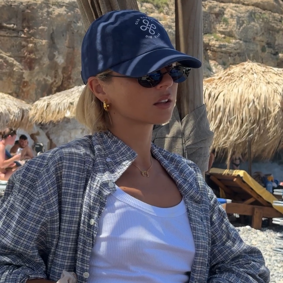 켄달 제너가 사랑하는 폴로의 네이비 볼캡도 추천! 빨간 로고와 컬러 맞춤이라도 한 듯 레드 컬러 스커트를 매치한 센스를 눈여겨보세요. 블랙 톱과 로퍼로 깔끔한 듯 세련된 위켄드 룩을 완성했답니다. 니트와 데님 룩에도 잘 어울리는 것은 물론, 레터링이 포인트로 들어간 네이비 볼캡은 워크 재킷과 스타일링한 여행 룩으로도 제격이죠.
