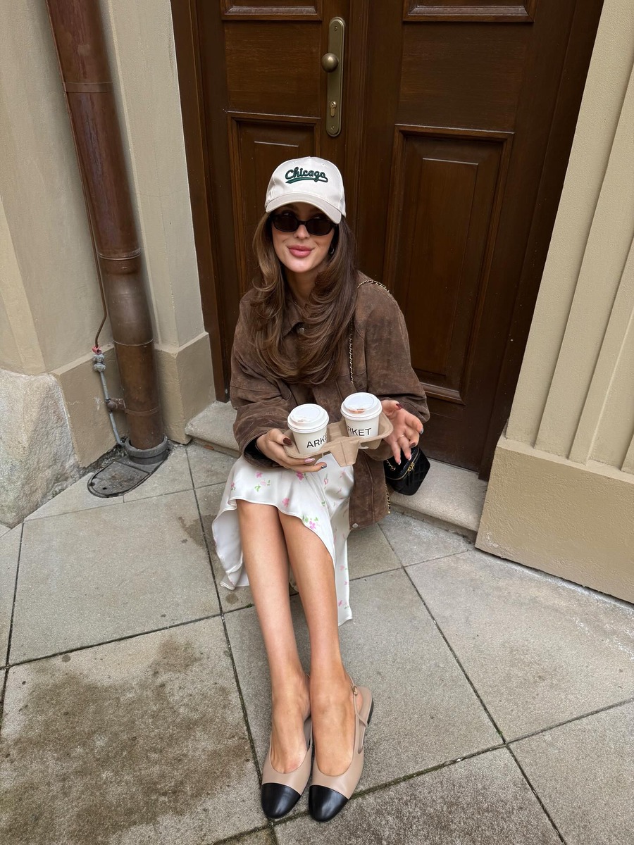 볼캡은 의외로 페미닌한 아이템과도 잘 어울리죠. 은은한 플로럴 패턴의 롱스커트와 발레리나 플랫 슈즈, 그리고 블루종을 함께 매치한 룩에 크림 컬러의 볼캡을 써보세요. 스포티한 무드를 줄여주면서 한층 스타일리시해 보일 수 있거든요.