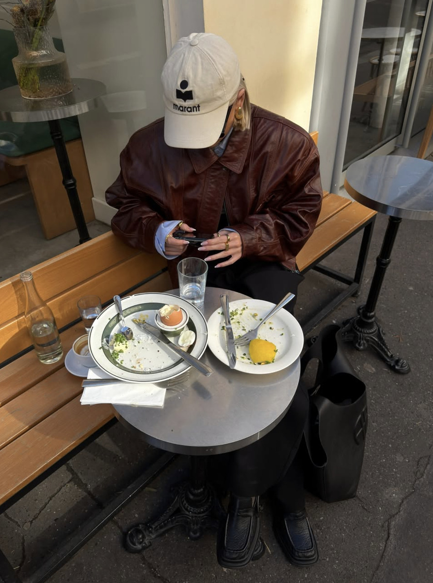 아이보리 톤의 모자는 어떤 스타일에나 잘 어울리는 것이 장점이죠. 버건디 컬러의 가죽 재킷이나 체크 패턴의 롱 트렌치코트 룩에도 무난하게 어울리거든요. 이때 볼드한 골드 주얼리로 포인트를 주면 한껏 꾸민 룩에도 볼캡이 어색하게 느껴지지 않는답니다.