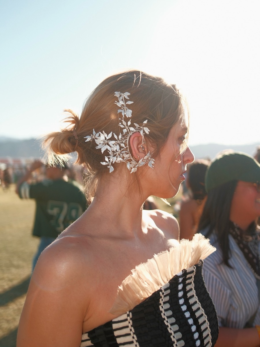 뮤직 페스티벌에서는 화려한 머리 장식도 빼놓을 수 없죠. 즉각적이고 간편하게 연출이 가능한 헤어 스티커를 활용한 것 외에도 아티스틱한 이어 피스와 헤드 피스를 활용한 룩 등 다채롭고 기발한 도구를 활용한 화려한 스타일이 눈에 띄었습니다.