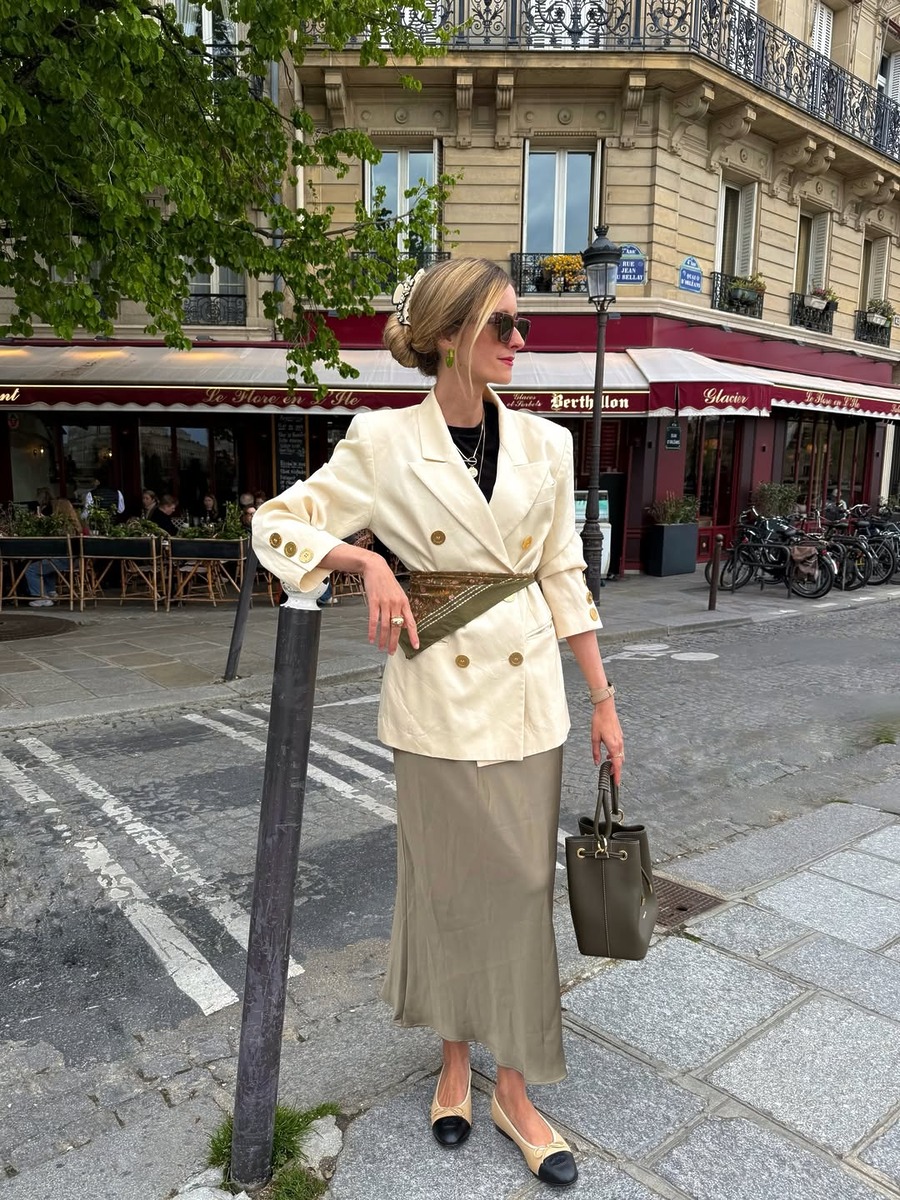 세미 오버핏 싱글 블레이저와 실키한 슬립 원피스는 가장 클래식하면서도 체형 커버에 완벽한 조합이에요. 차르르 떨어지는 롱 슬립 원피스 위에 오버핏 블레이저를 입으면, 팔뚝과 가슴의 볼륨은 재킷이 가려주고 원피스가 세로 라인을 길어 보이죠. 앉고 일어설 때 다리와 팔의 제약이 전혀 없어 활동성도 최고에요.