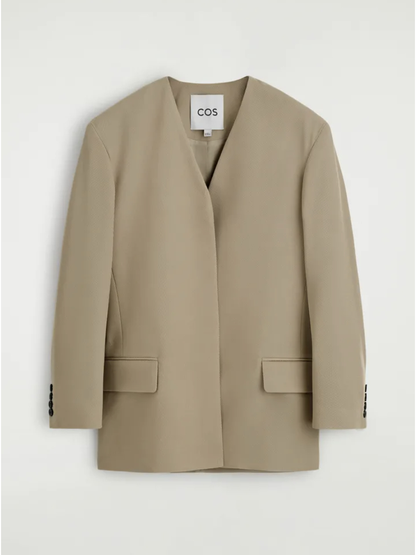 가슴 볼륨이 있다면 카라가 넓은 투버튼 재킷은 상체를 더 답답하게 만들어요. 명치 아래까지 브이자로 깊게 파인 원버튼이나 노카라 디자인을 선택해 시선을 세로로 분산시키세요. 팔뚝의 활동성을 위해 겨드랑이 부분이 넉넉한 세미 오버핏이 필수에요.