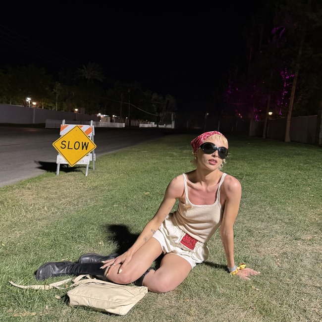 미국 젠지의 패션 아이콘 엠마 체임벌린은 레트로 무드의 카키 마이크로 쇼츠와 브라운 부츠로 클래식하면서도 세련된 페스티벌 룩을 선보였습니다. 보헤미안 스커트나 요란한 아이템 하나 없이도 얼마든지 멋스러운 페스티벌 패션을 연출할 수 있다는 자신감이 느껴집니다. 마음껏 뛰어놀 수 있는 크로스백과 레트로한 디자인의 틴티즈 선글라스까지! 빈티지 페스티벌 룩의 정석이라고 할 수 있겠네요.