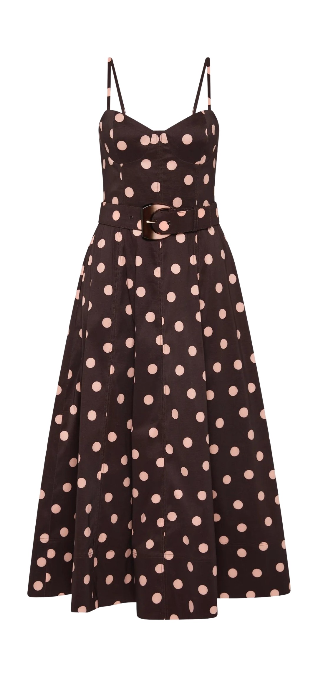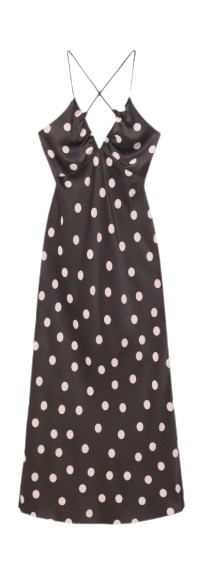 따뜻한 휴가지에서 인생샷을 건질 때 홀터넥 드레스만한 아이템도 없죠. 사뿐사뿐 움직일 때마다 나풀거리는 쉬폰 소재라면 더 매력적인데요. 윈터는 브라운 바탕에 화이트 도트가 들어간 드레스를 선택했어요. 볼드한 금속 장식이 네크리스 효과를 내 별도의 액세서리가 필요 없네요.