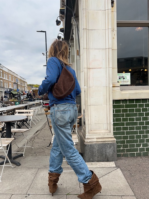 자연스러운 ‘꾸안꾸’ 빈티지 룩을 연출하고 싶다면, 루즈한 핏의 빈티지 데님에 브라운 슬라우치 부츠가 제격. 부드러운 데님 팬츠에 자연스럽게 구겨진 슬라우치 부츠를 매치하면, 애쓰지 않은 듯 멋스러운 스타일링이 완성됩니다. 이때, 상의는 흰색 티셔츠나 스트라이프 티셔츠로 편안하게 힘을 빼줘 팬츠와 슈즈로 자연스럽게 시선이 갈 수 있도록 연출해 주세요.