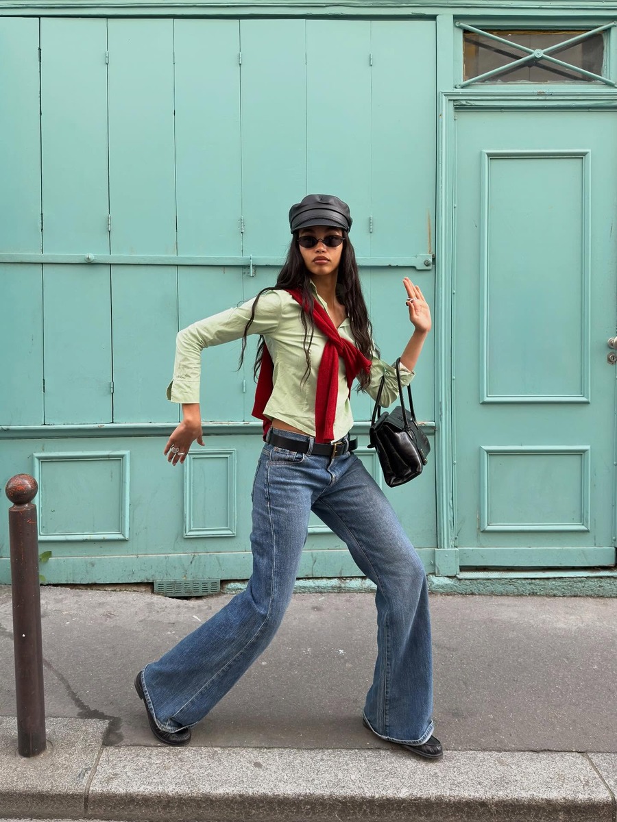 최근 유행 중인 로우 라이즈 부츠컷에는 몸에 밀착되는 슬림한 셔츠를 곁들여 보세요. 전체적인 실루엣이 군더더기 없이 정돈되면서 단정함과 캐주얼함이 공존하는 데님 스타일을 즐길 수 있어요. 민트 컬러 셔츠에 채도 높은 레드 카디건을 어깨에 심심치 않게 둘러주면 룩에 활력이 생기죠. 자칫 산만해질 수 있는 컬러감은 나머지 소품을 블랙으로 통일해 차분하게 가라앉혀 균형을 맞추는 것이 좋습니다.