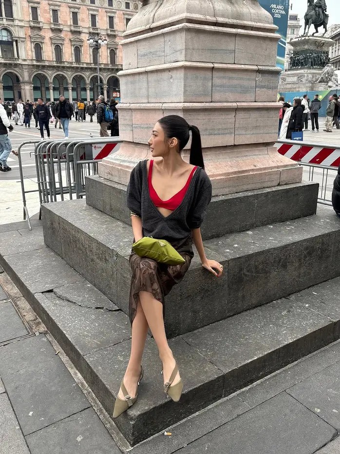 딥 브이넥 니트 트렌드의 시작은 프라다 2026 S/S 컬렉션. 넥라인을 명치 부근까지 과감하게 커팅한 니트를 선보이며 전 세계 패션 피플들의 이목을 집중시켰습니다. 지금까지 브이넥 니트가 교복이나 오피스 룩에 쓰이는 단정하고 다소 고루한 아이템이었다면, 이번 시즌에는 넥라인의 깊이를 조절함으로써 관능적이고 세련된 아이템으로 다시 태어난거죠.
