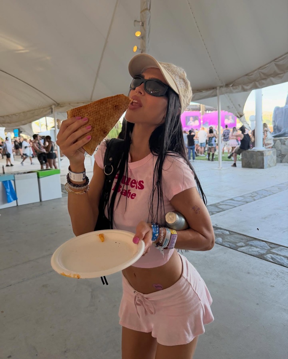 모델 아멜리아 그레이 역시 캐주얼한 룩으로 축제를 즐겼습니다. 화이트 탱크 톱에 넉넉한 실루엣의 블랙 진을 매치해 시크한 분위기를 자아내거나, 핑크색 베이비 티셔츠와 미니스커트 조합으로 Y2K 무드를 발랄하게 풀어냈죠. 머리부터 발끝까지 잔뜩 힘을 준 룩보다, 일상적인 아이템으로 스타일의 완성도를 높인 그녀의 선택이 훨씬 쿨해 보입니다.