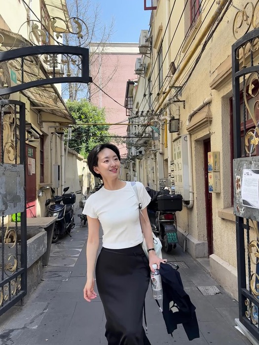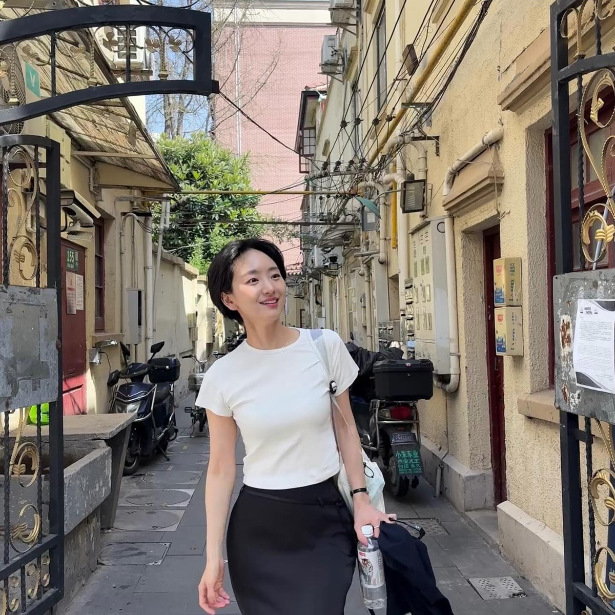 배우 신소율은 컬이 들어간 숏컷 스타일을 선택했어요. 윗머리에 층을 내어 볼륨감을 살리고, 앞머리에 강한 컬을 넣어 입체감을 준 스타일이죠. 뒷머리는 목선을 따라 가볍게 붙여 목선이 더욱 길어 보이는 것도 장점! 정수리의 볼륨과 이마를 덮는 컬이 시선을 위로 끌어올려 얼굴을 상대적으로 길고 갸름해 보이게 만드는 효과가 있어 둥근 얼굴형에 특히 잘 어울립니다.