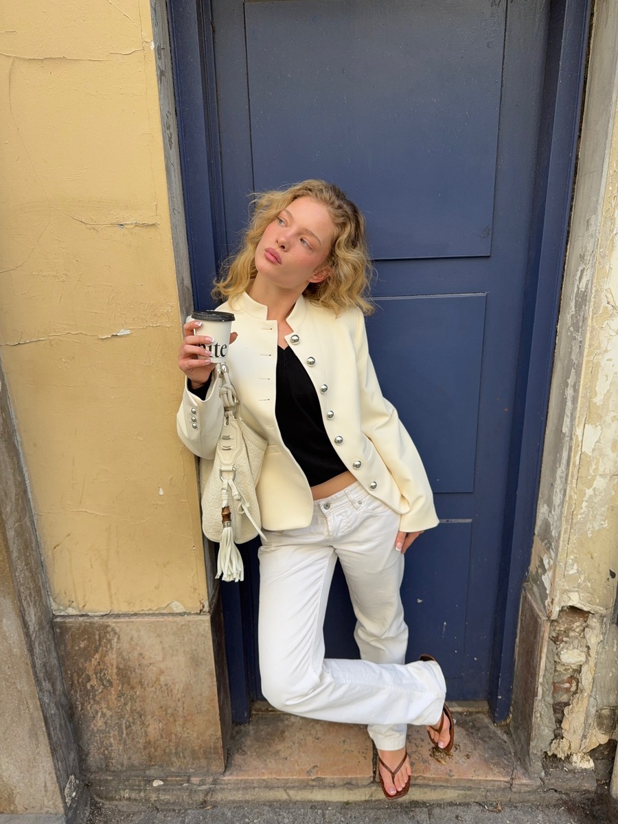 브라운 컬러의 플리플롭도 눈여겨봐야 할 아이템. 화이트 데님에 아이보리 재킷을 매치하고 브라운 플리플롭 힐로 마무리하면, 블랙과는 전혀 다른 클래식하고 따뜻한 무드가 완성됩니다. 화이트와 아이보리, 브라운의 조합은 올여름 가장 세련된 뉴트럴 팔레트 중 하나죠. 브라운 플리플롭 힐은 블랙이나 화이트는 물론, 카멜, 베이지, 테라코타 같은 브라운 톤 아이템과도 잘 어울려 활용도가 높아요.