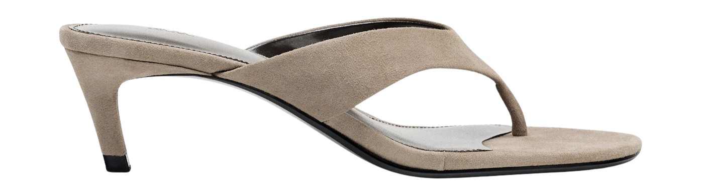 플리플롭 힐과 가장 잘 어울리는 아이템은 바로 스커트입니다. 린다처럼 차분한 뉴트럴 컬러로 전체 톤을 통일하고 블랙 플리플롭 힐을 매치해 보세요. 슈즈의 심플한 실루엣 덕분에 스커트 기장이 길어도 전혀 답답해 보이지 않는 건 물론, 90년대 미니멀 무드가 그대로 살아납니다.