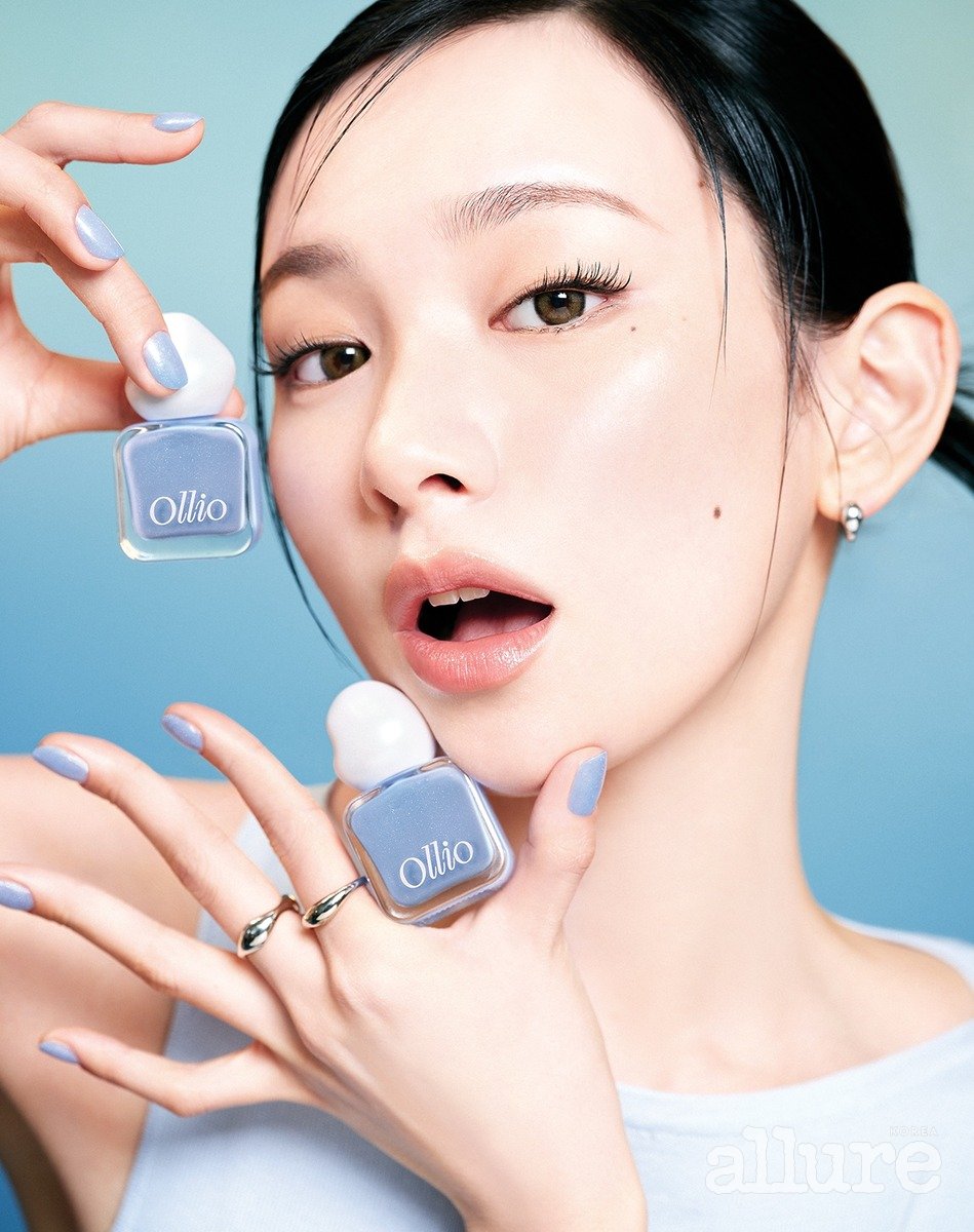 진령의 네일과 속눈썹 위에 내려앉은 올리오의 블루 오로라.