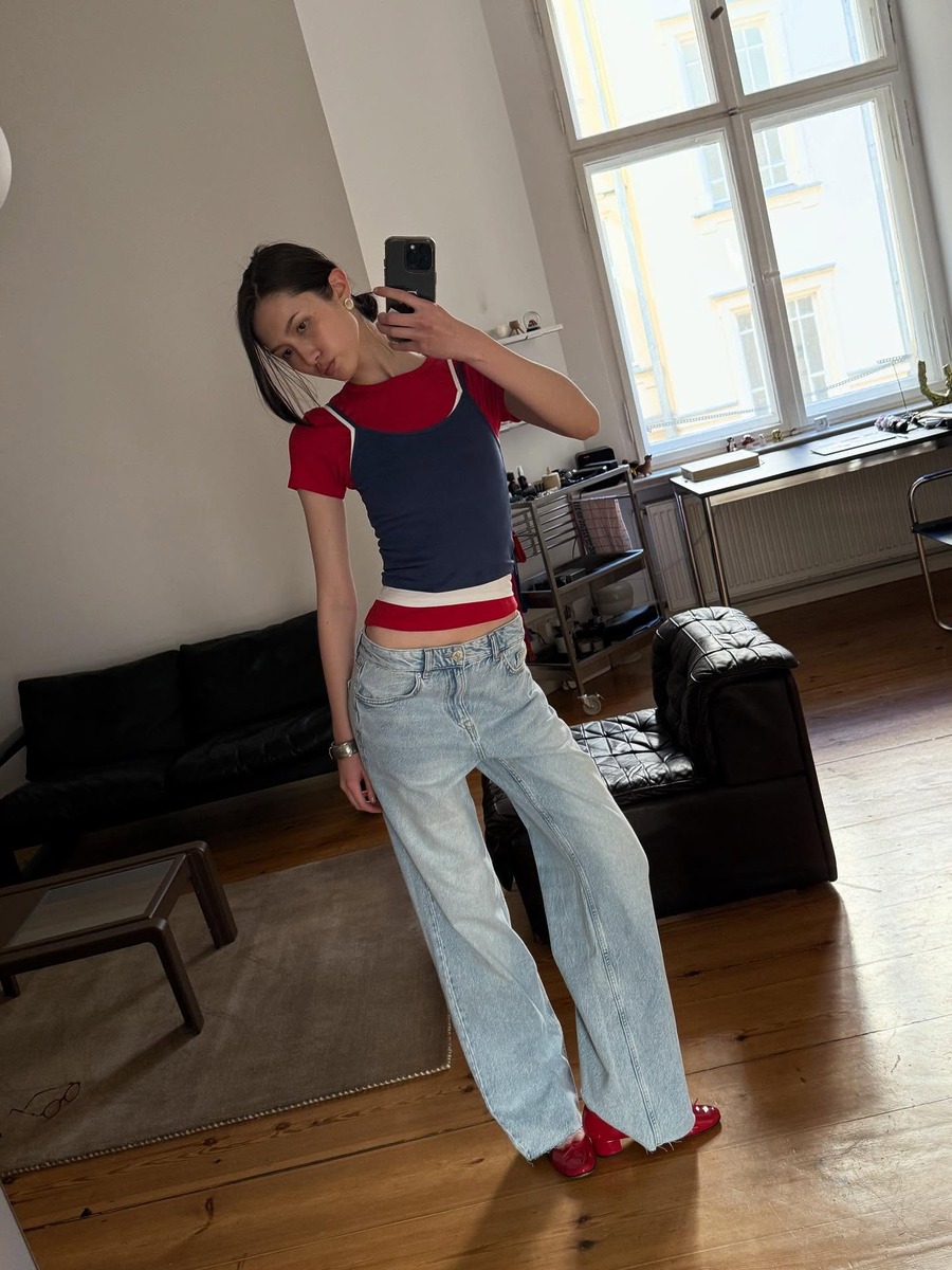 레이어드를 잘하기 위해서는 틀에 박힌 공식에서 벗어나는 것이 무엇보다 중요해요. 요즘 패션피플들은 이너로만 입던 탱크톱을 티셔츠 위로 레이어드 하는 것에 푹 빠져 있습니다. 쨍한 레드 컬러 티셔츠 위로 무채색 탱크톱을 매치하는 식이죠. 이렇게 하면 강한 컬러도 부담 없이 소화할 수 있을 뿐 아니라 레이어가 더해져 전체적인 스타일의 완성도가 높아집니다.