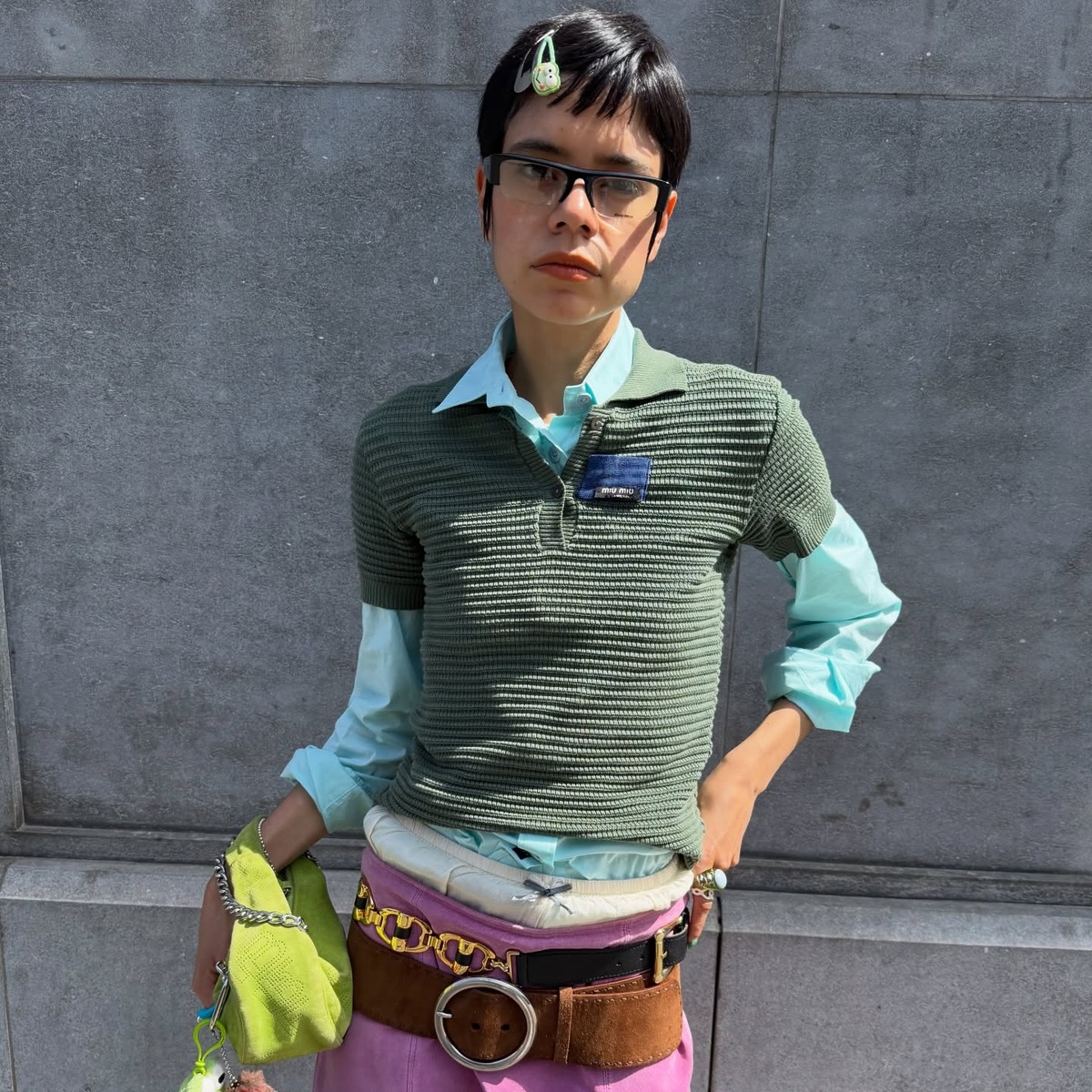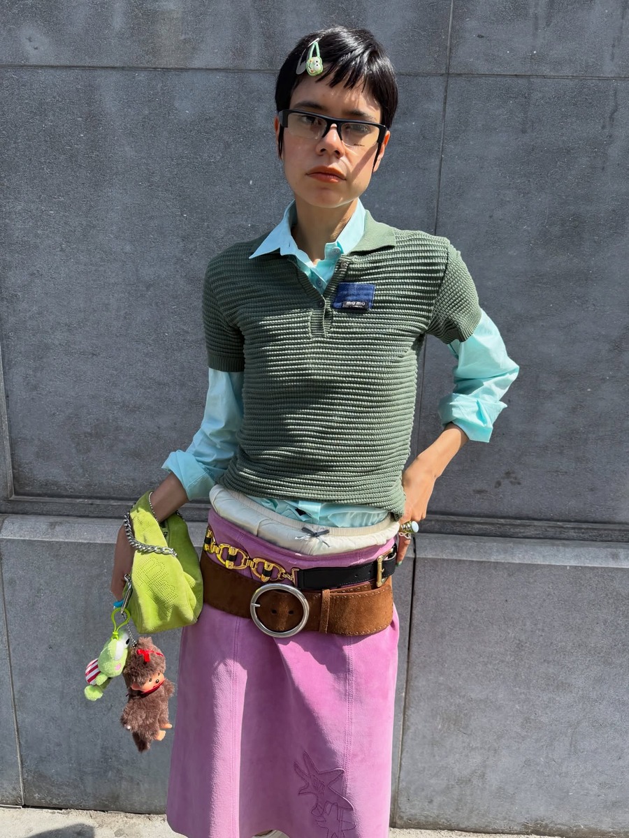 새로운 계절을 맞아 스타일 변신을 시도해 보고 싶지만, 매 시즌 새 옷을 살 수는 없죠. 그럴 땐, 서랍 속 잠들어 있는 티셔츠를 다시 꺼내야 할 때! 핫핑크 스커트에 민트 컬러 셔츠를 매치하고 폴로 셔츠로 마무리해 보세요. 지루하고 단정한 아이템이라고만 생각했던 폴로 셔츠가 채도 높은 아이템들 사이에서 중심을 잡아 줘 발랄한 룩이 완성됩니다.