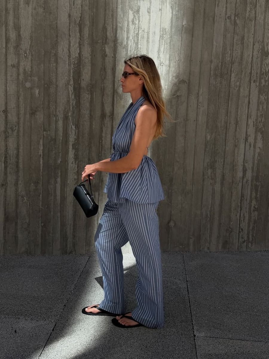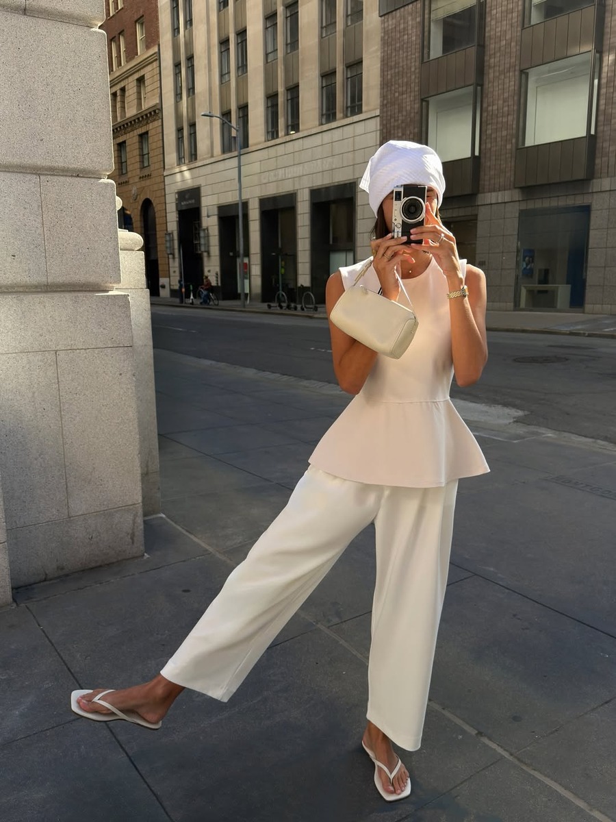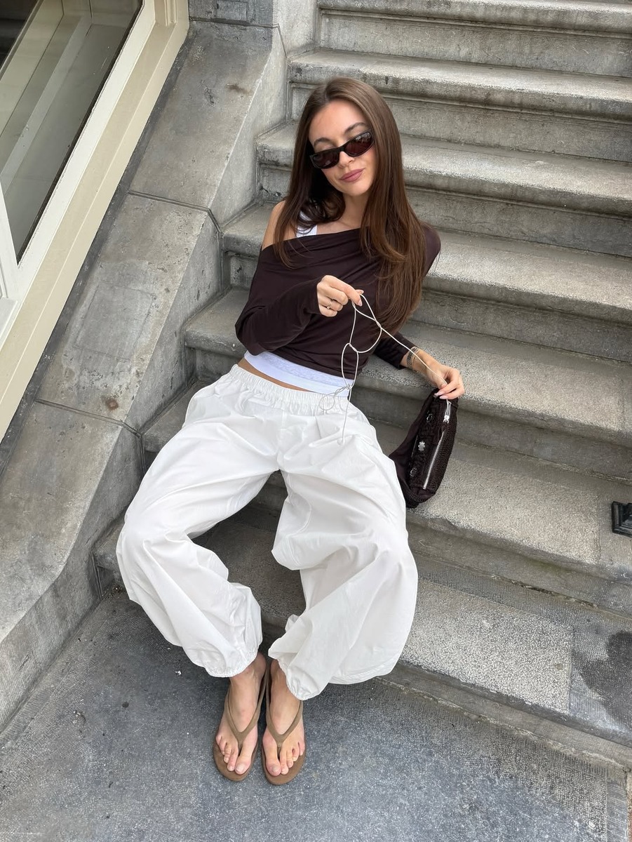 이 얇고 섬세한 슈즈들을 단순히 ‘슬리퍼’처럼 신기엔 그 잠재력이 너무 아깝습니다. 발등을 시원하게 노출하는 만큼, 상하의의 볼륨감을 조절하는 것이 스타일링의 핵심이에요. 최근 트렌드인 풍성한 벌룬 스커트나 와이드한 로우 라이즈 데님처럼 하체가 무거워 보일 수 있는 착장에 매치하면 하단의 무게감을 덜어내 전체적인 실루엣 밸런스 조절을 할 수 있어요.