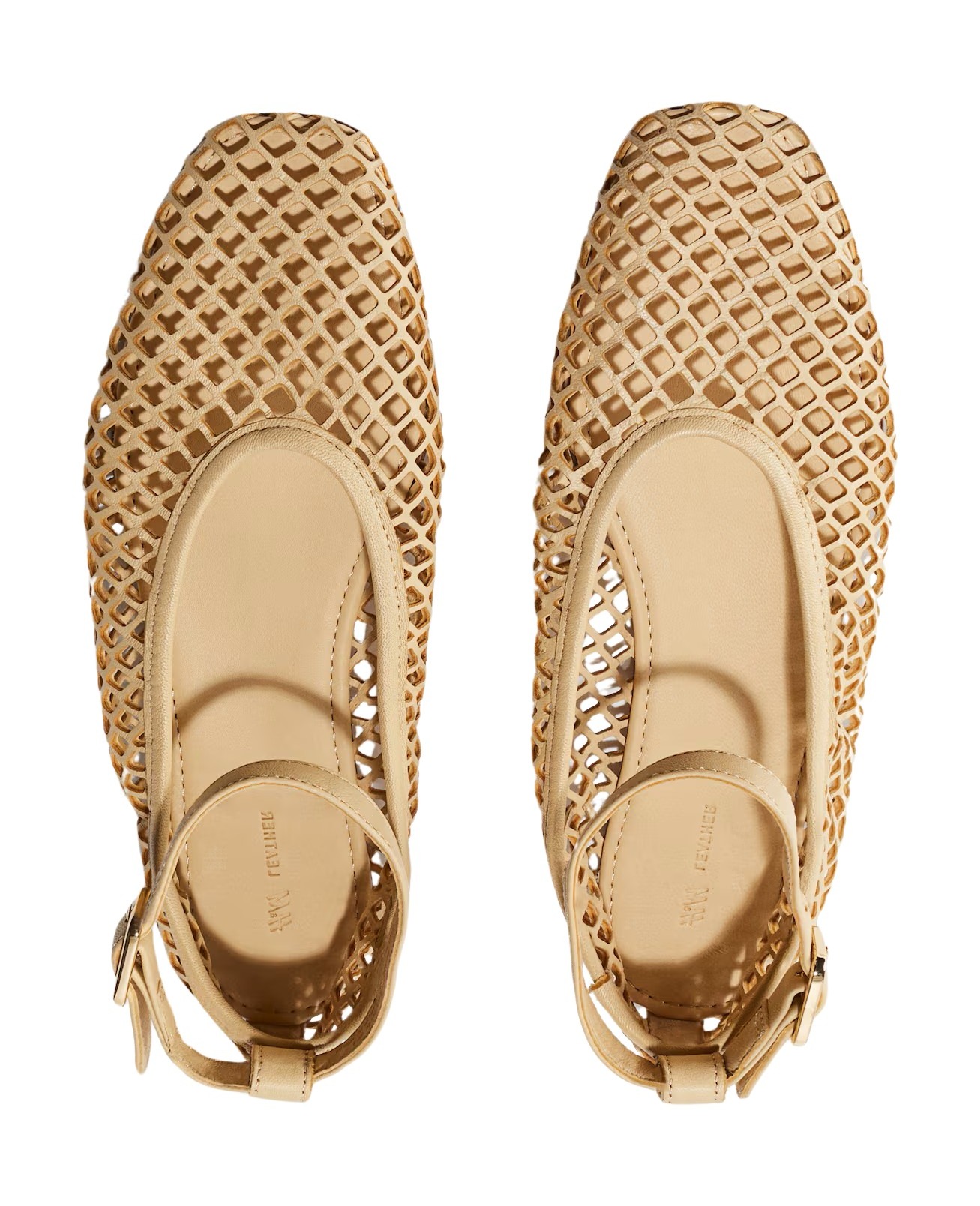 겨울에도 라피아백으로 따뜻한 휴양지의 온도를 더했던 김나영. 봄에서 여름으로 넘어가는 요즘 날씨를 즐기기 위해 선택한 룩은 딸기우유색 미니드레스와 노란색 레더재킷이었어요. 여기에 슈콤마보니(SUECOMMA BONNIE)의 크로쉐 스트링 플랫슈즈로 발걸음을 더 가볍습니다. 발목을 감은 끈 덕분에 매끈한 다리가 더 돋보이죠?