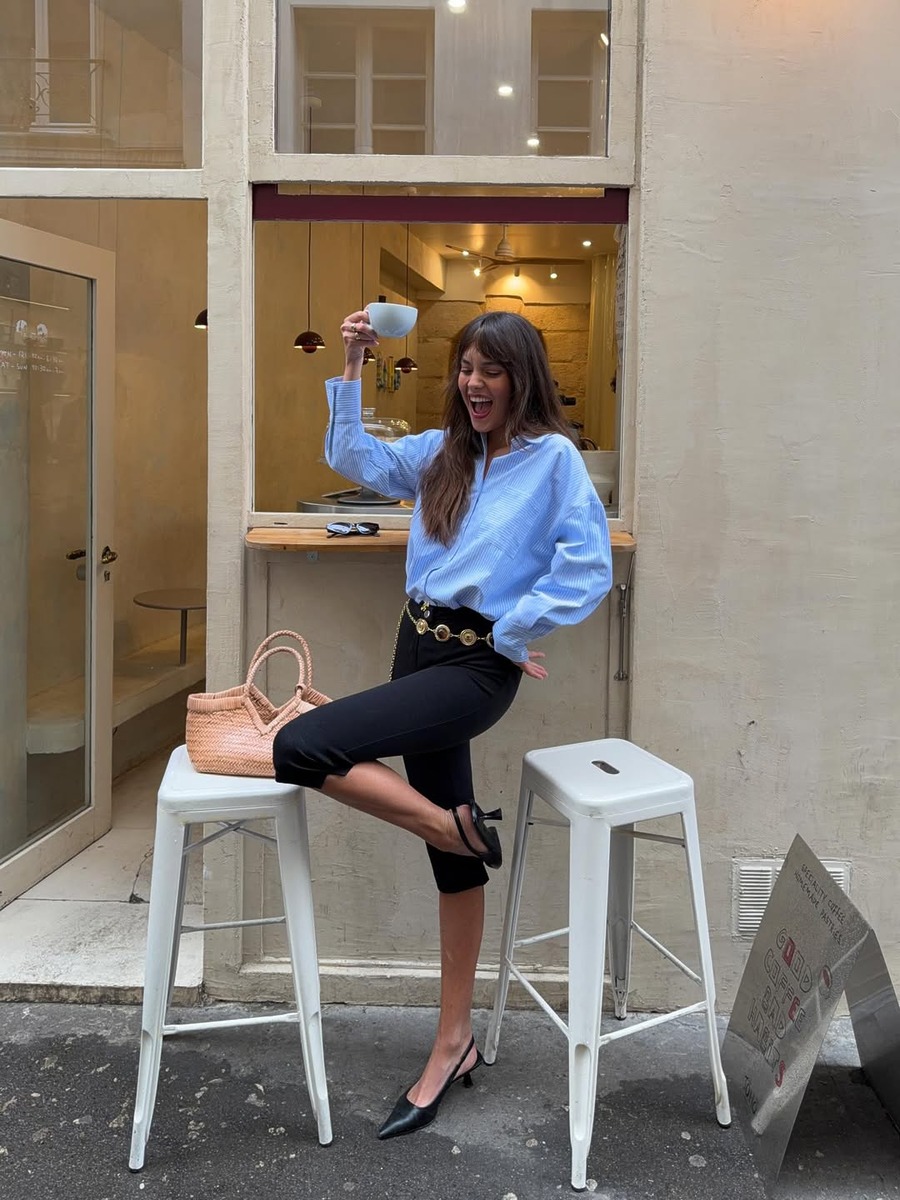키튼힐 특유의 얇은 굽과 날렵한 디자인은 발끝의 무게감을 최소화해주죠. 드러난 맨살과 자연스럽게 이어지며 다리를 한층 더 길고 슬림해 보이게 만들어주며, 룩 전체를 산뜻하고 쿨하게 만들어줘요.
